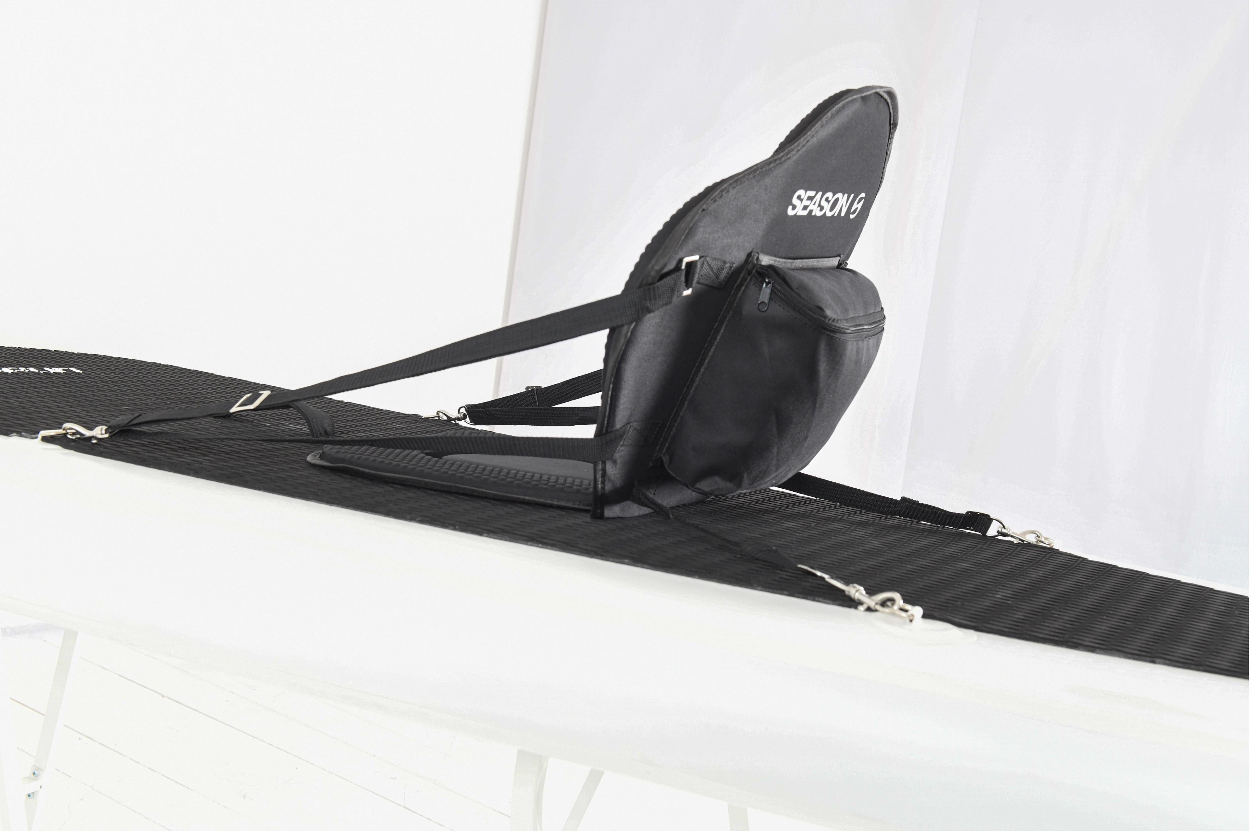 Der komfortable Kayak Sitz aus Neoprene lässt sich einfach und schnell auf dem SUP montieren. Der feste Rückenteil steht gut und stützt hervorragend. Der Sitz kann mit den 4 Befestigungsbändern optimal eingestellt werden. Der Kayak Paddelspass kann beginnen.