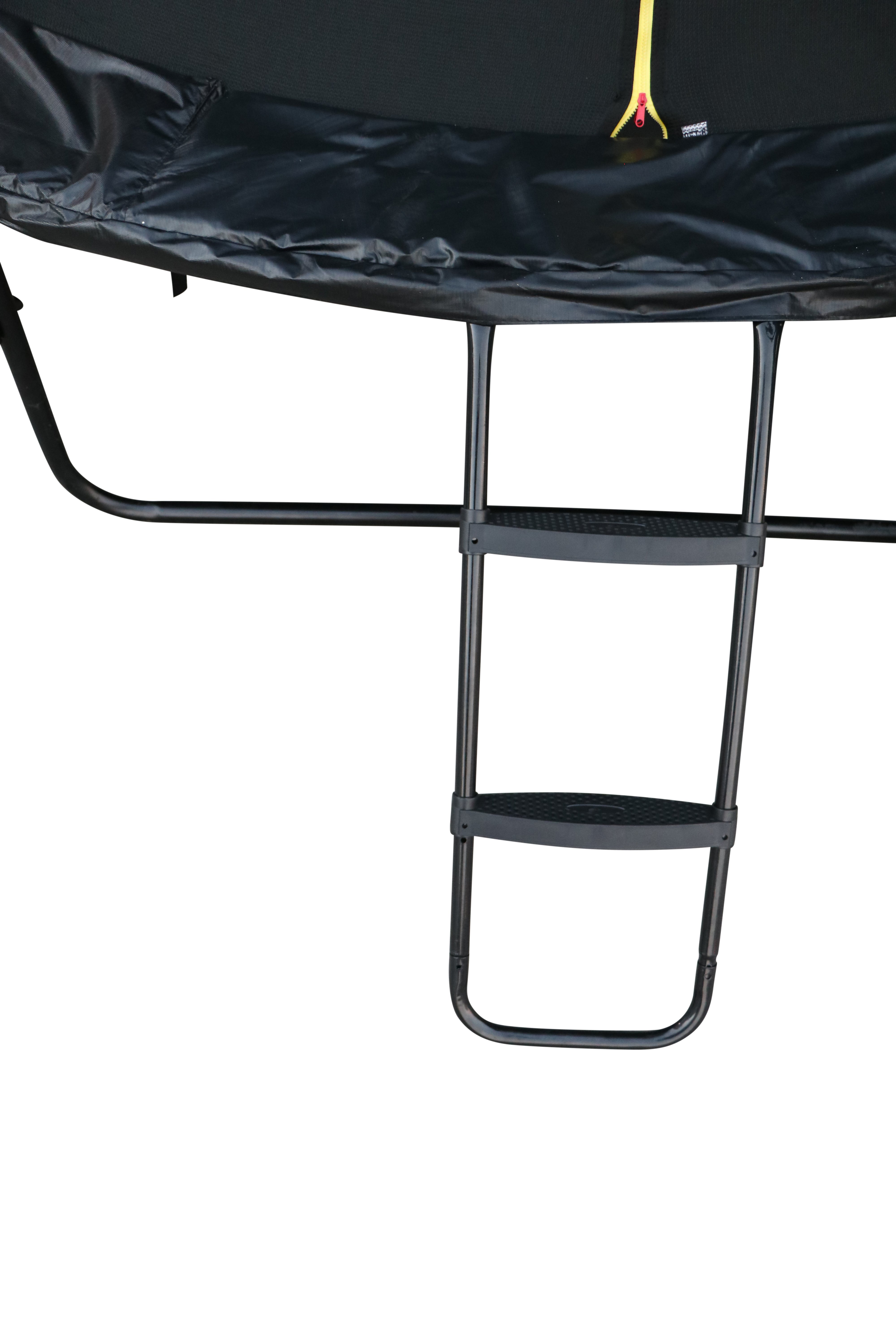 Grenzenloser Spass für die ganze Familie – das garantiert das Gartentrampolin Orbiter von Solo Play. Hergestellt aus galvanisiertem Stahl bietet das Gartentrampolin Orbiter von Solo Play über viele Jahre hinweg endlosen Spass für die ganze Familie. Orbiter kommt mit einer grossen Sprungmatte von 366 cm Durchmessern, welche Kinder und Erwachsene zum vergnügten Spielen und Ausprobieren verschiedener Sprünge einlädt. Für zusätzliche Sicherheit sorgt das mitgelieferte Sicherheitsnetz mit Einstiegsöffnung und dank intelligenter Konstruktion lässt sich das Trampolin einfach und in nur wenigen Schritten aufbauen. Die Sprungmatte sowie das Sicherheitsnetz wurden mit einer UV-Beschichtung überzogen und die verzinkten Stahlfedern sind widerstandsfähig und bieten langanhaltende Elastizität, eine geräuscharme Funktionsweise sowie eine starke Rückfederung bei gleichzeitig geringer körperlicher Belastung. Das Trampolin Orbiter kommt im Komplett-Set: Trampolinrahmen, Sprungtuch, Federn, Sicherheitsnetz und Leiter sind im Lieferumgang inklusive. Das Gewicht des Orbiter Trampolins beträgt 150 kg. Zudem ist das Orbiter Trampolin CE Norm zertifiziert.
