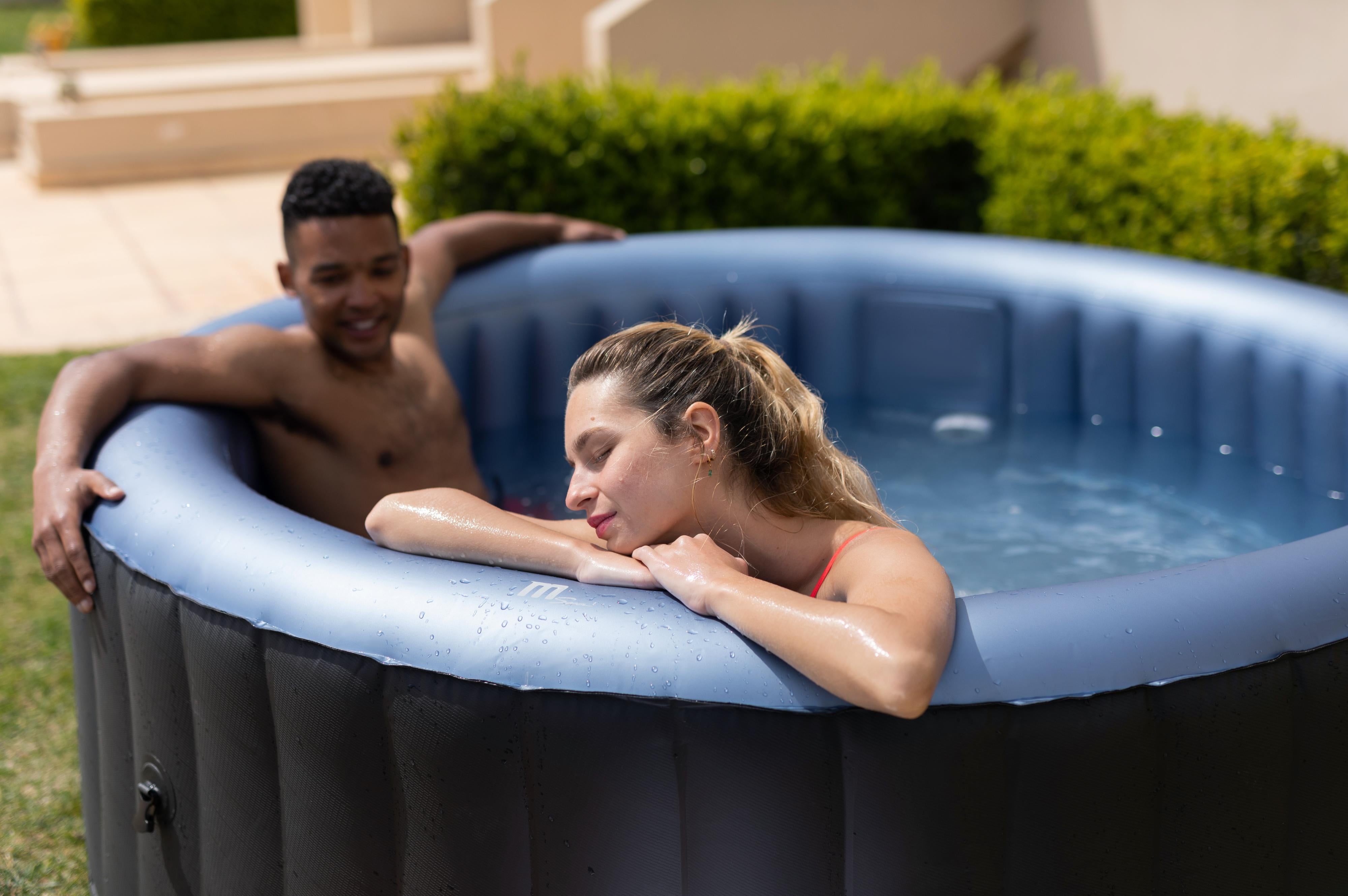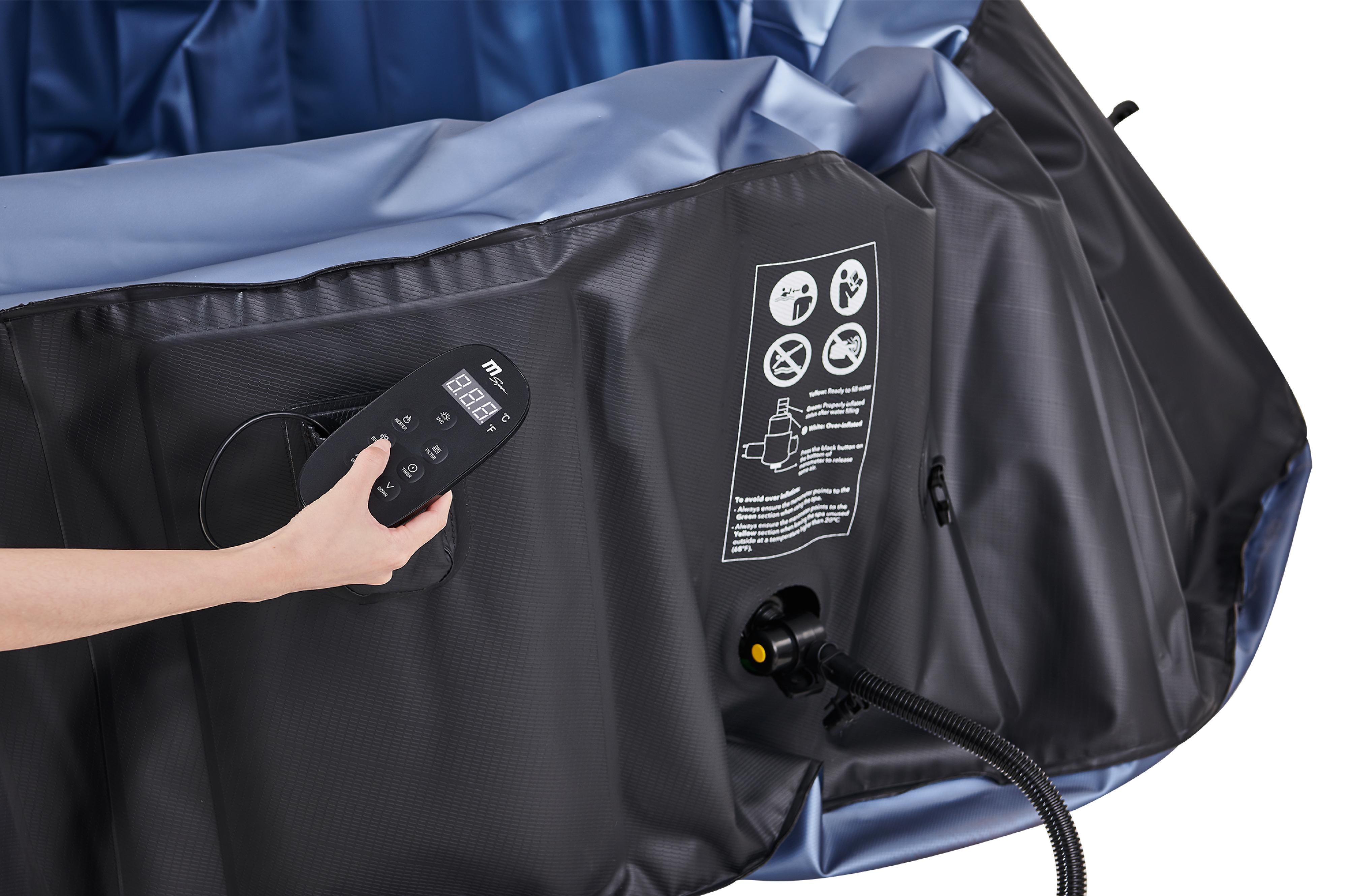 MSPA Bergen für 4 Personen (2+2) Spa mit UVC-Desinfektionsmittel und antibakteriellem System, das mehr als 60 krankheitsverursachende Mikroorganismen und Krankheitserreger töten kann. Klassische runde Form in Anthrazit/Metallic-Blau mit Rhino-Tech 6-lagigem verstärktem PVC-Material mit Sicherheitsschnalle für die Abdeckung. 118 innovative und dynamische Luftdüsen, die tausende von dämpfenden Blasen freisetzen, um Ihren Körper zu massieren. Erwärmt sich bis zu 38 GradDie neueste 2021 MSPA-Fernbedienung bläst das Spa selbst auf, die Temperatur einstellen, Blasen ein- und ausschalten und den Heiz-Timer voreinstellenMaße: 1,8 m x 1,8 m (Außenmaße) – 1,4 m x 1,4 m breit innen – 0,70 m hoch / 700 l Kapazität / 1500 W Heizung / 6 Monate Spa Pool Garantie, 24 Monate elektrische Teile / inklusive kabelgebundener Controller, Gartenschlauchadapter, Filterkartuschen-Pack, Inflationsschlauch mit Nanometer und Bedienungsanleitung (evtl. nicht in deutscher Sprache). Das neue 2021 MSPA Bergen ist ganz einfach das beste Preis-Leistungs-Verhältnis, Premium-4-Personen-aufblasbares Spa auf dem Markt.