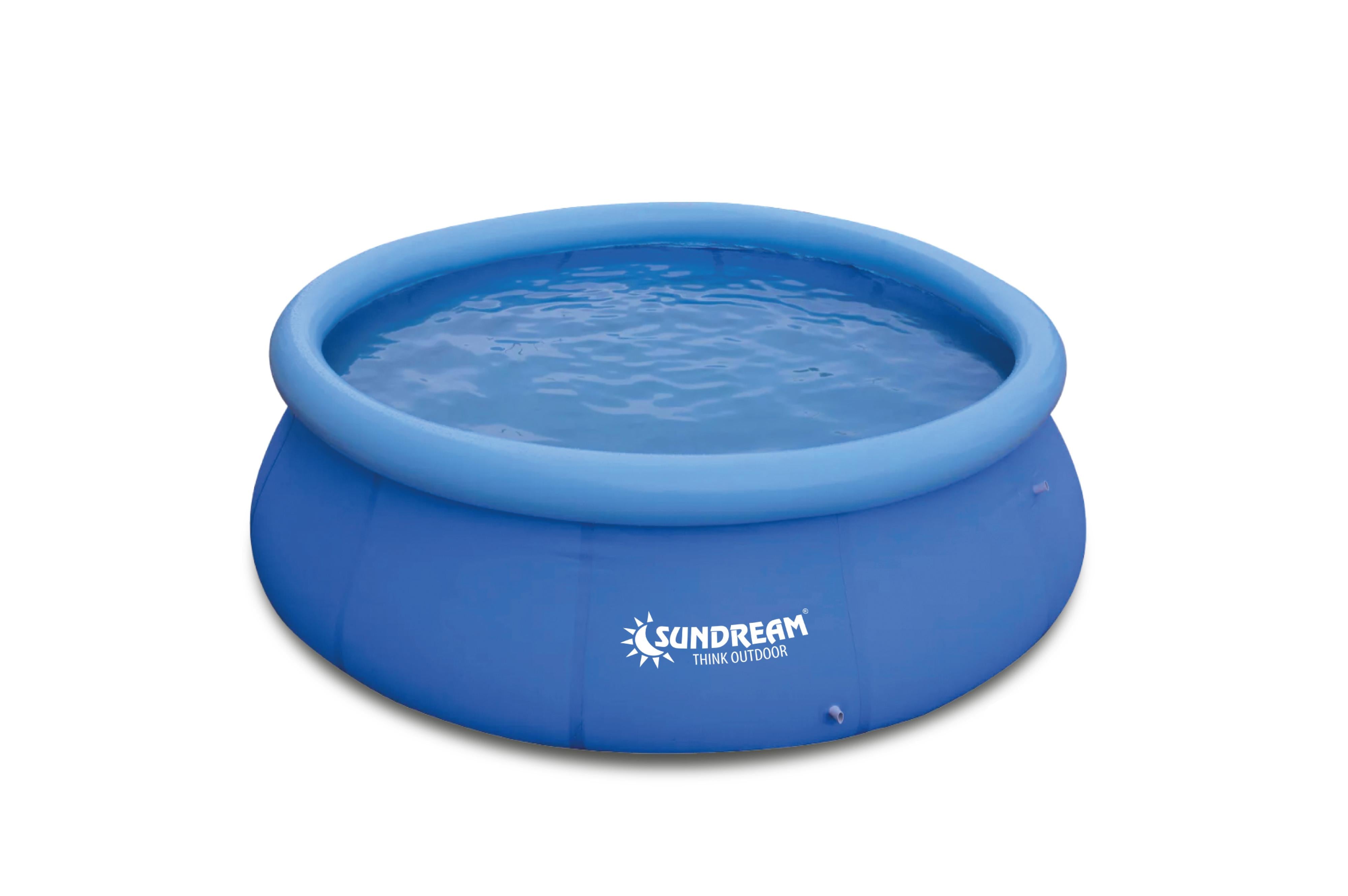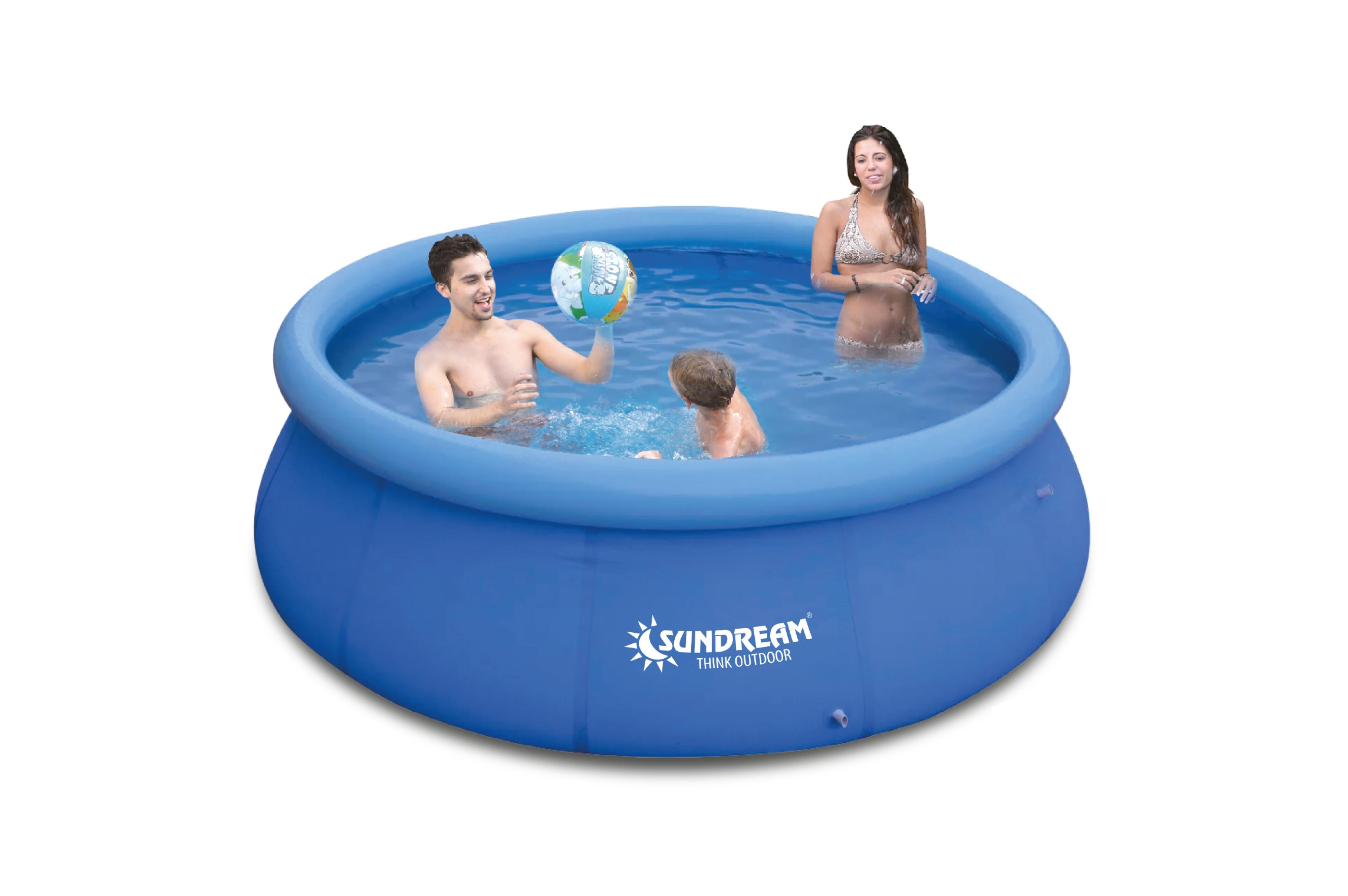 Mit dem Fast Set Pool von Sundream kommen Feriengefühle direkt in den eigenen Garten. Der Sundream Ring Pool aus verstärktem PVC-Spezialmaterial und 3-lagigem DeepTex® Polyester bietet Platz für drei Personen um sich an heissen Sommertagen im Garten abzukühlen. Der Pool hat ein Fassungsvermögen von 850 Litern und dank des aufblasbaren Seitenrings werden die Seitenwände zusätzlich stabilisiert. Der Pool wird ohne Pumpe, aber mit einem Repair Kit geliefert und richtet sich bei der Befüllung mit Wasser automatisch auf.